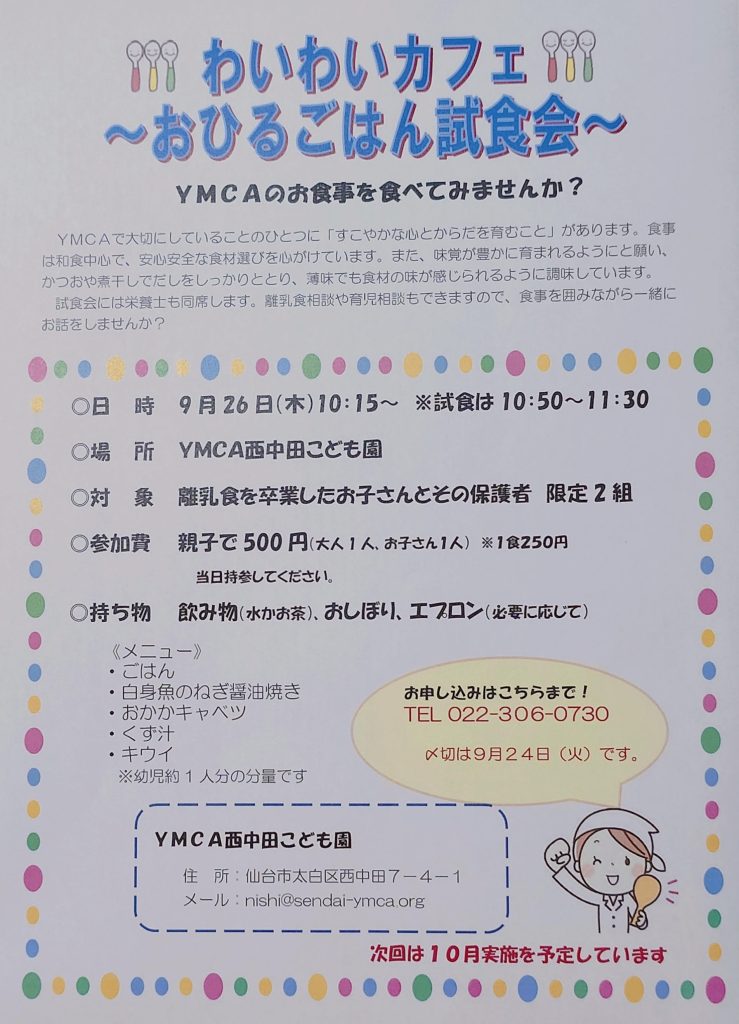 さて、今日は『 わいわいカフェ ~おひるごはん試食会~ 』のお知らせです♪