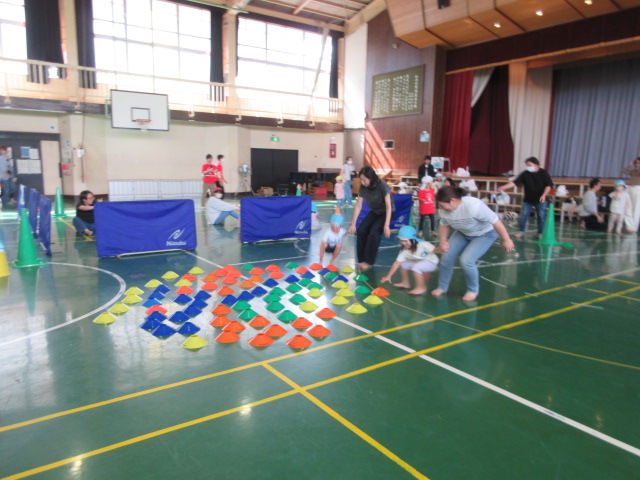 今回は、綱引き・ディスクコーン集め・巧技台のコーナーの様子をご紹介します♪