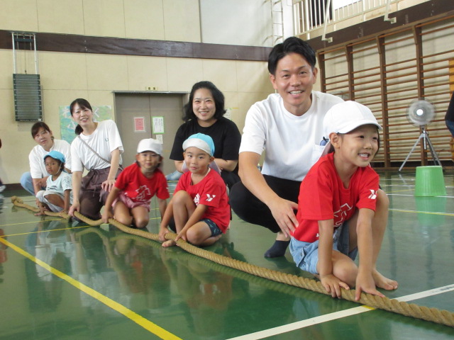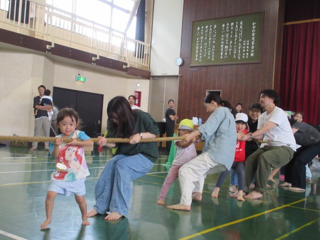 チームに分かれて綱引きを行いました。園児同士の対決だけでなく、職員チームとも行い、大盛り上がりでした😊悔しくて泣く子の姿も見られるなど、楽しい中にも真剣に取り組んでいる姿も見られました✨