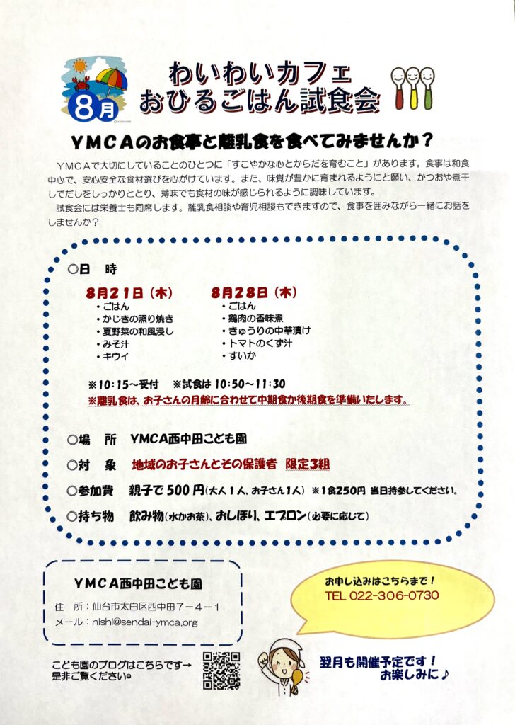 YMCAの食事(離乳食)を知っていただく良い機会かと思いますので、
