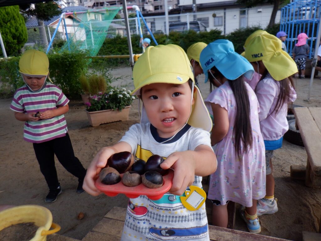 園隣にある西中田公園では、今の季節はトチの実がたくさん落ちています🌰