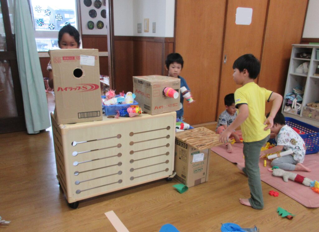 遊びの中で自分でイメージをし表現すること、長さを比べることなどを経験している子どもたちです。