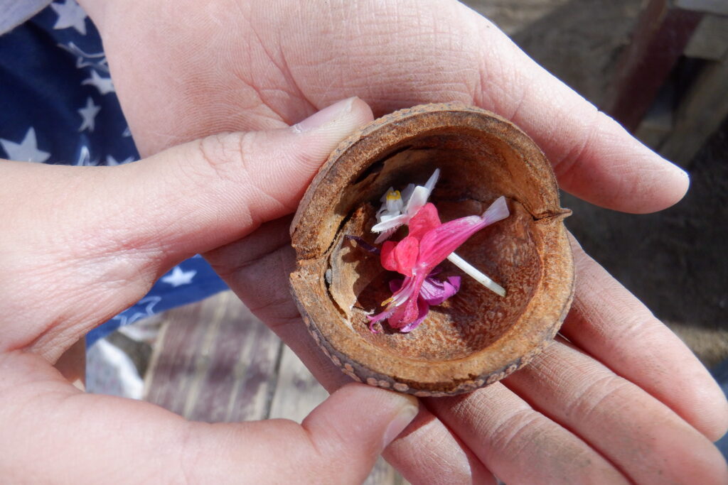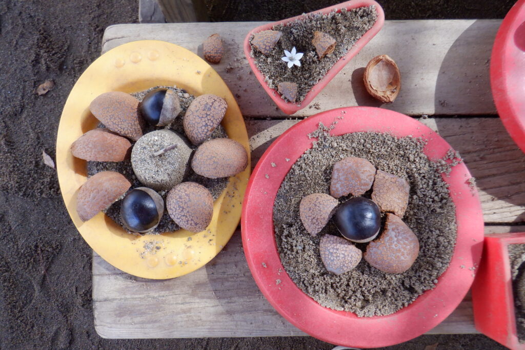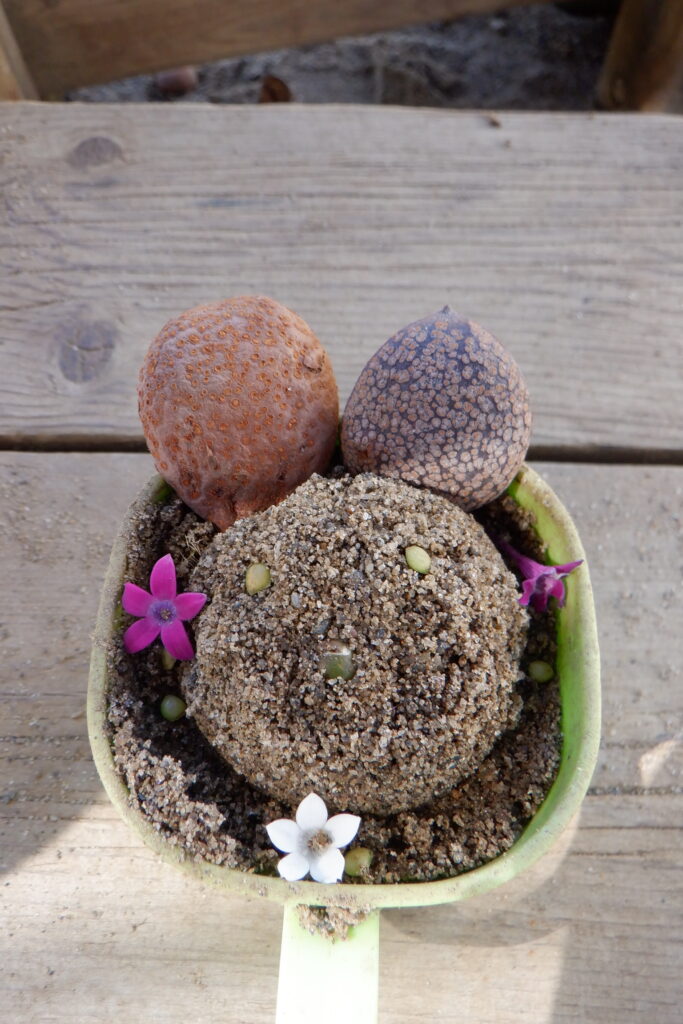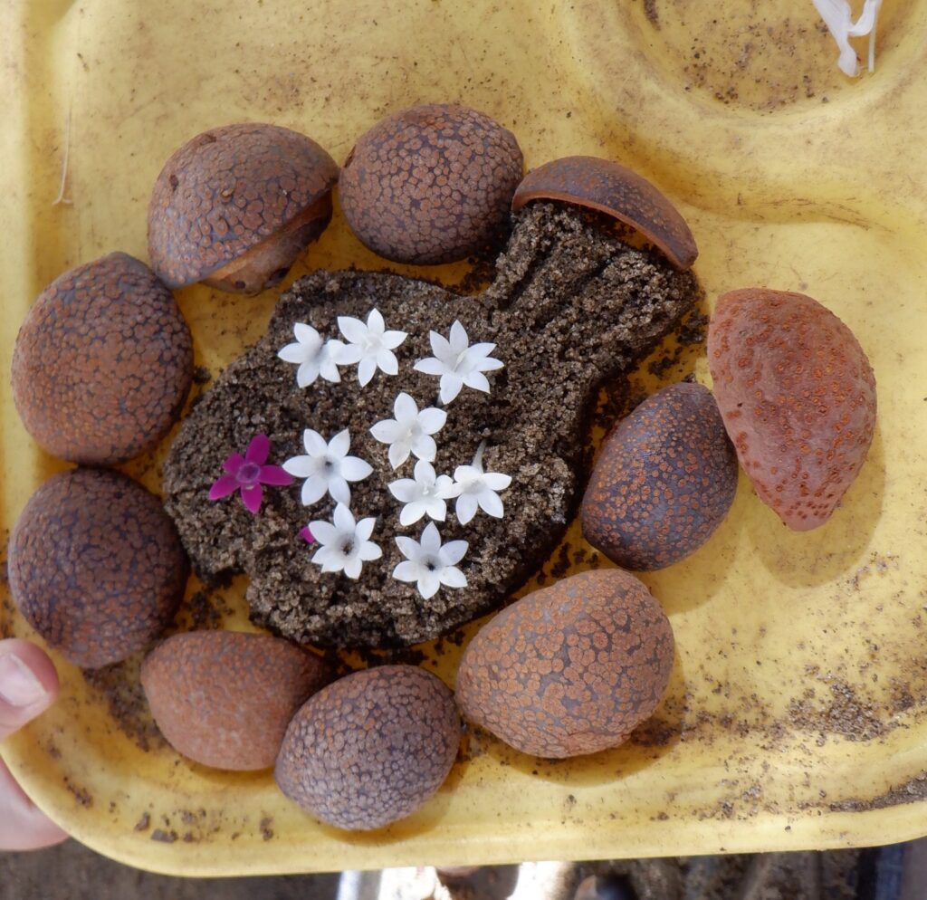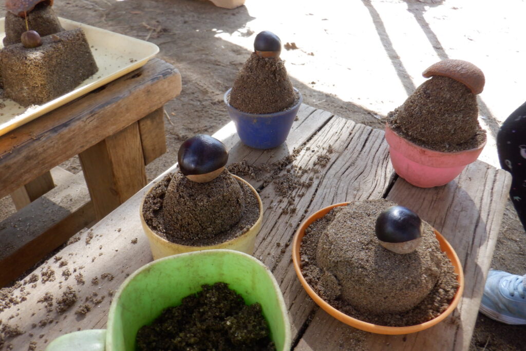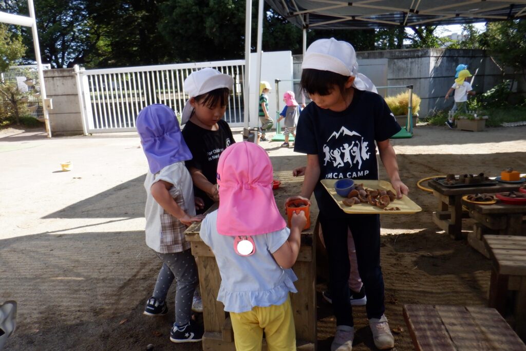 とちの実や園庭の花を使って、ケーキやパフェを作っていきます✨