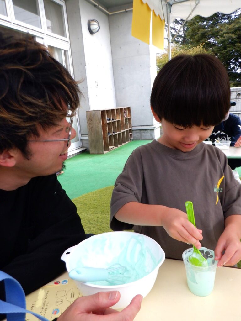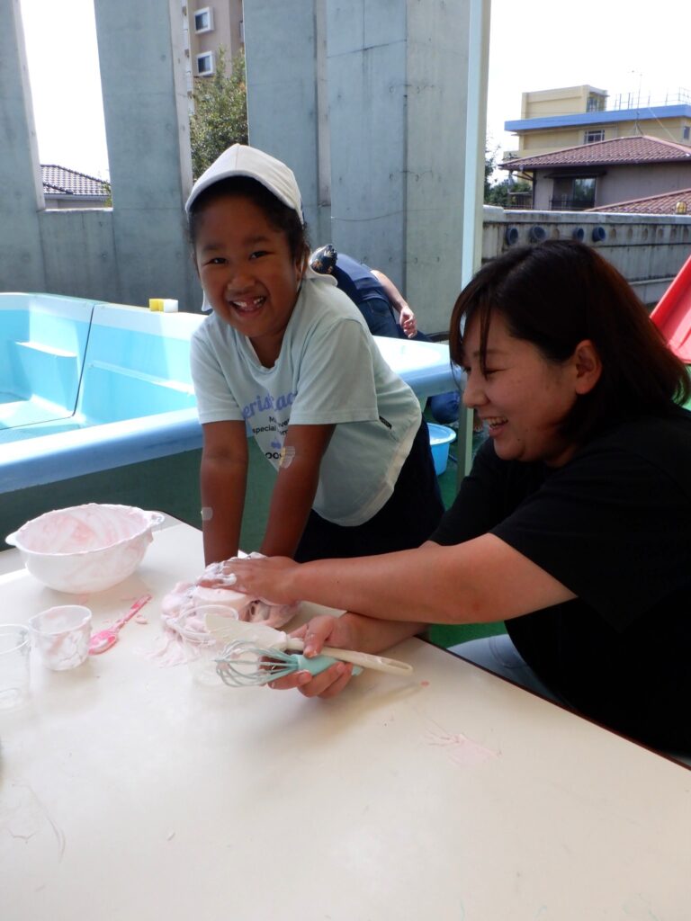 『あわあわキッチン★』では、石鹸を泡立ててクリームを作りました。