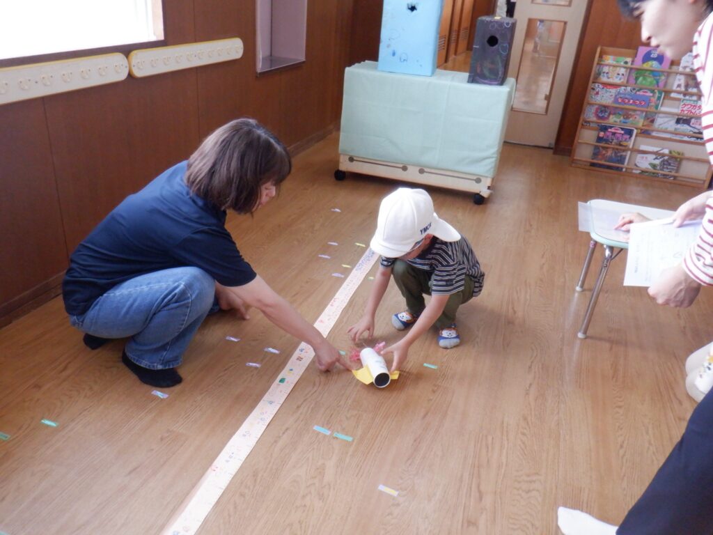 自分の身体をうまく使って、長さを測るお子さんもいました。