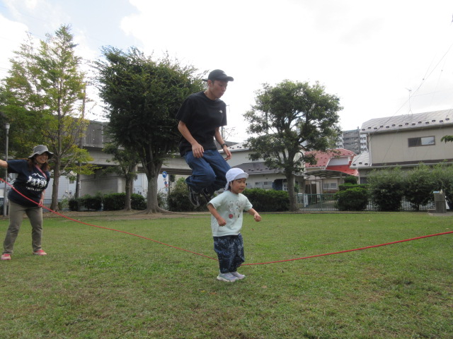 親子で一緒に!お父さんのジャンプ、すごいですね!!