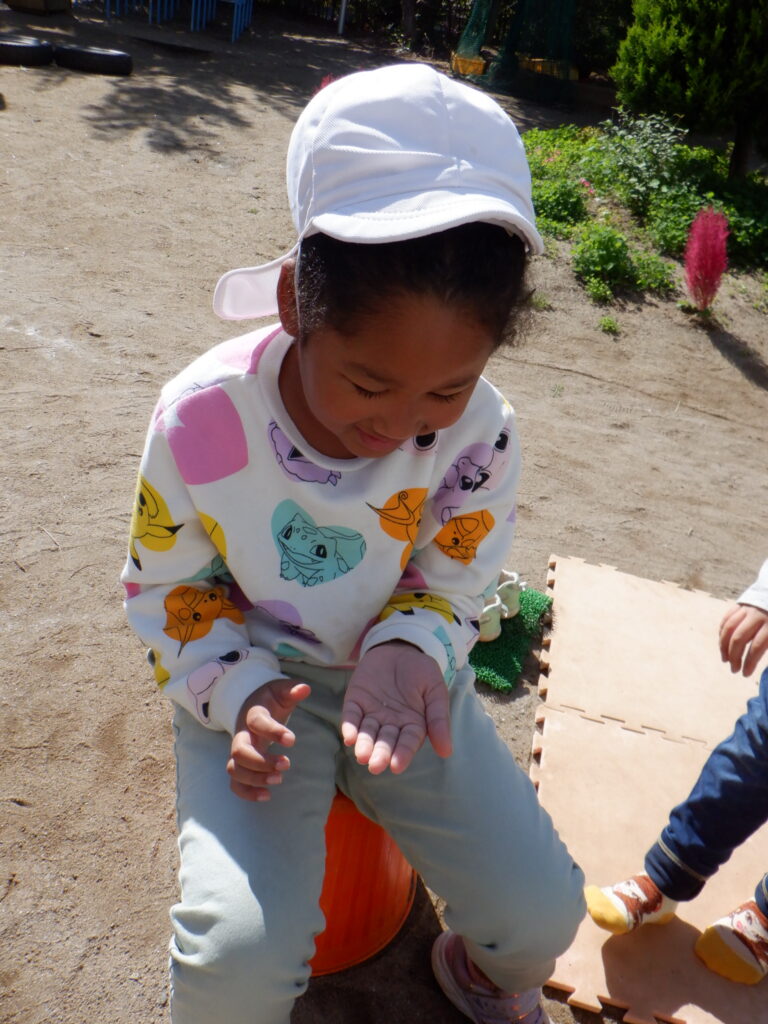 3歳児クラスさんの女の子は「誰かが隠したんじゃない?」と嬉しそうな表情で伝えてくれました。