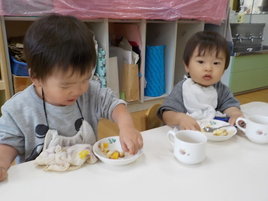 りんごに興味津々のどんぐり組の子どもたちです🍎