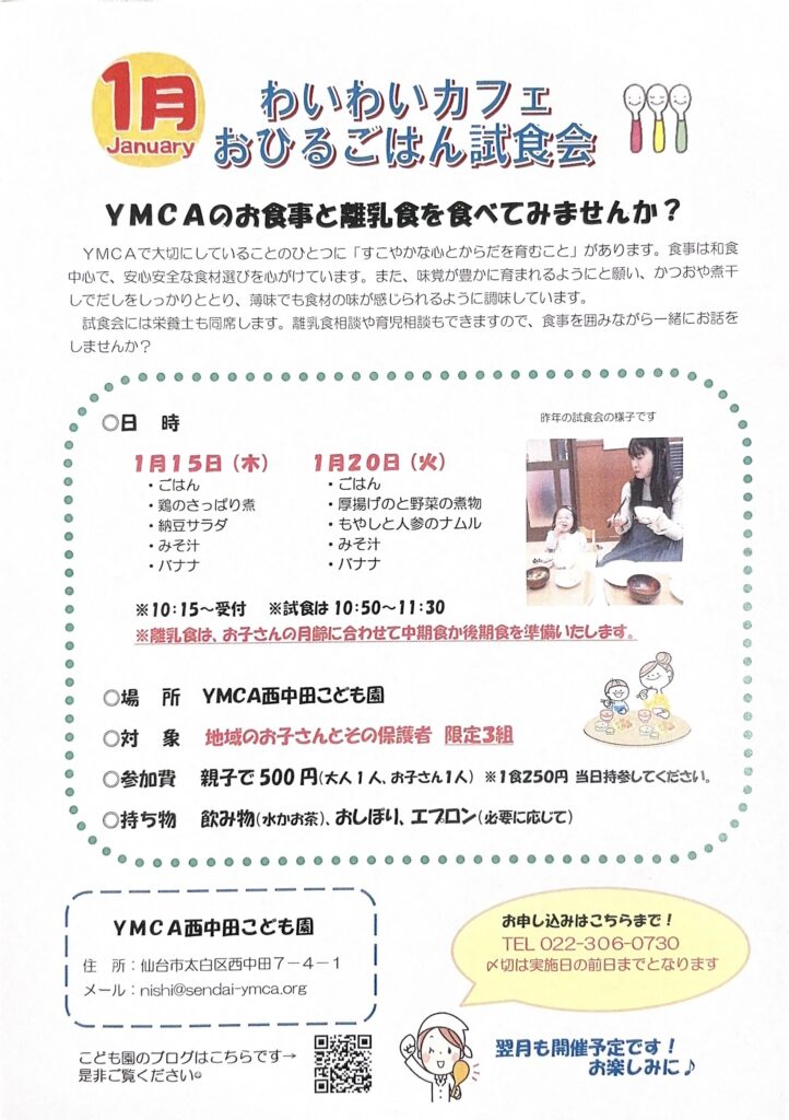 1月の「わいわいカフェおひるごはん試食会」のお知らせ