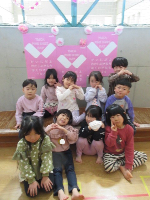 今日は、朝からピンクの洋服や小物を身に着けて来てくれる子どもたちで園内がピンク一色でした。また、お子さんの「好きなところ」「素敵なところ」をピンクシャツカードにご記入いただき、ありがとうございました。